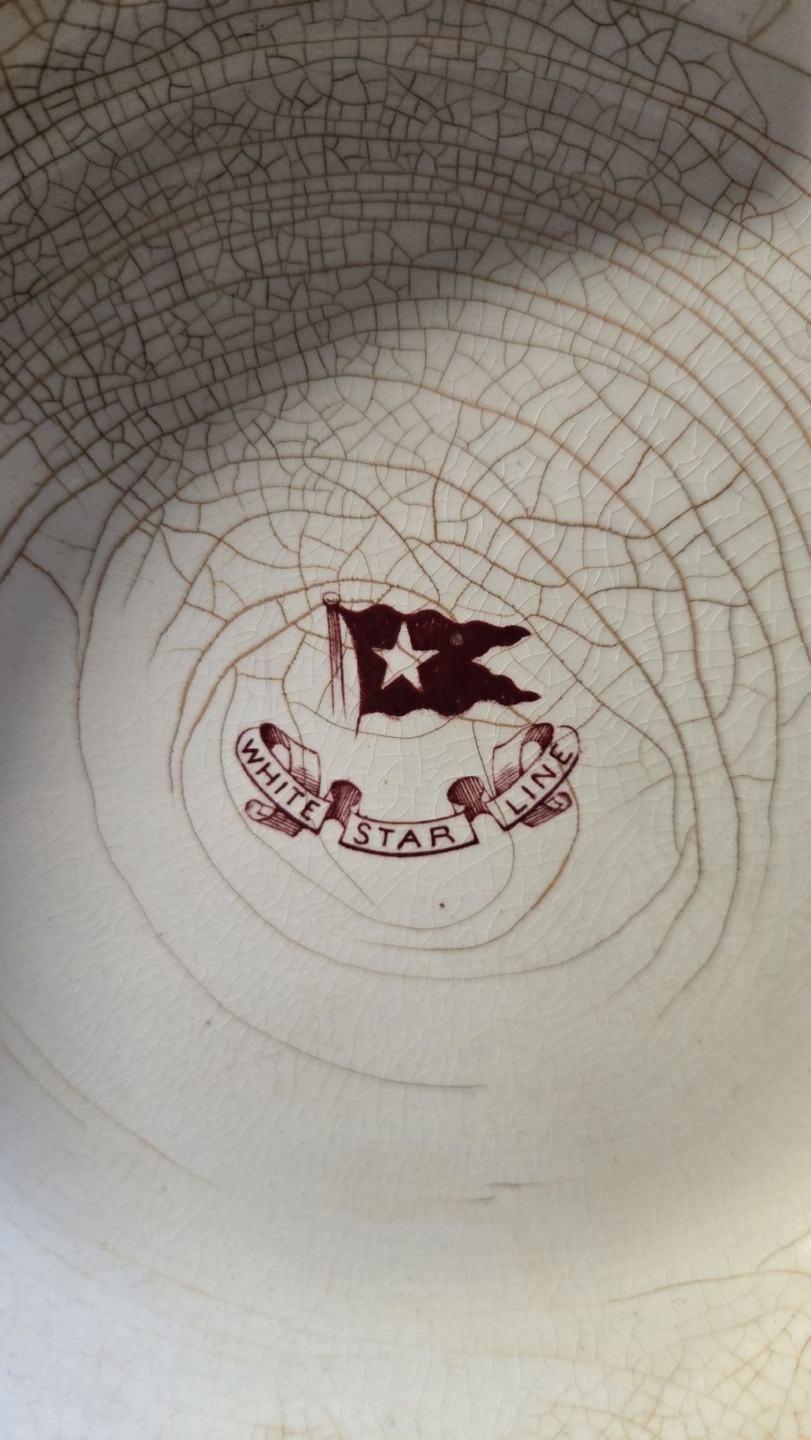 An original WSL china bowl from the wreck of White Star Line ship, SS Arabic.