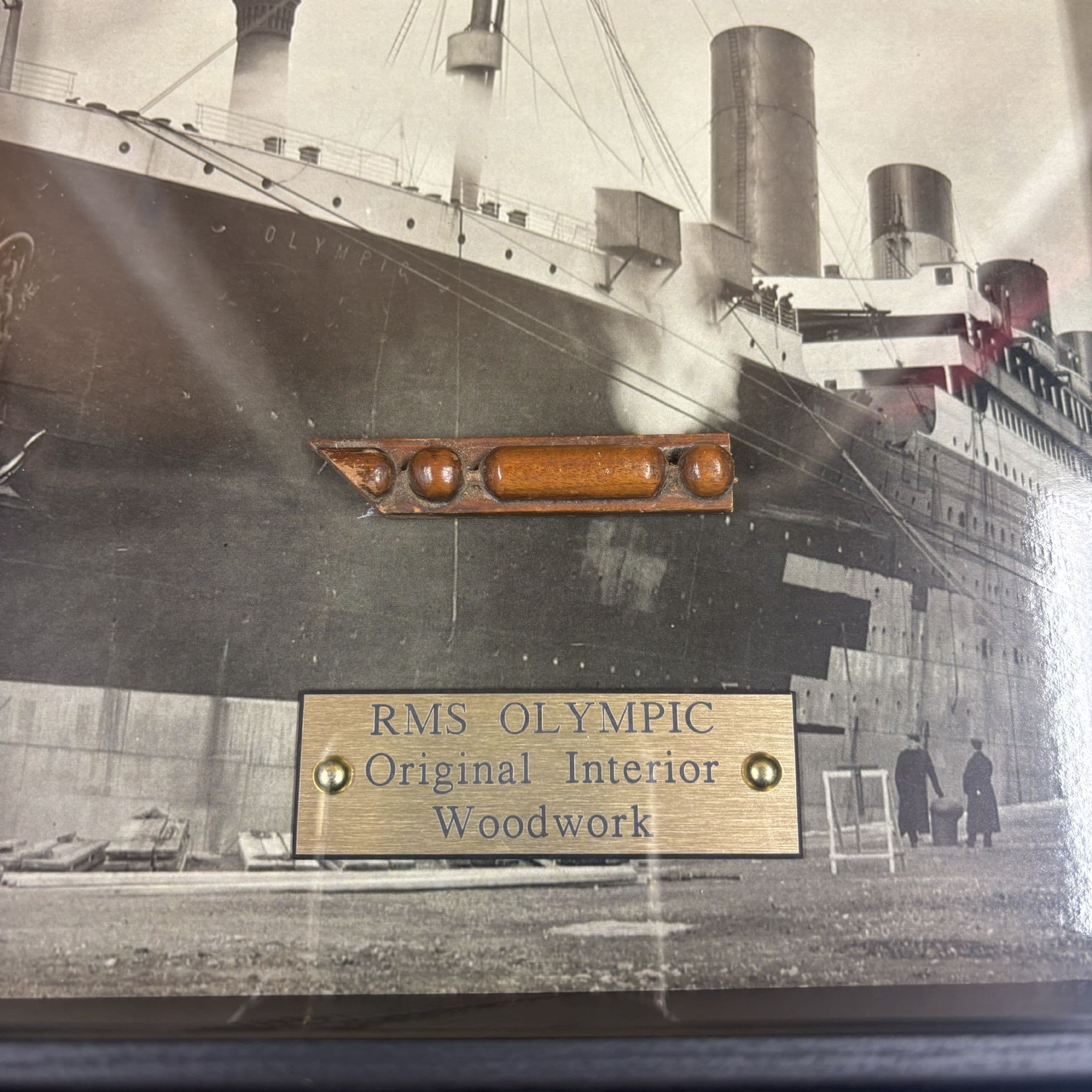 This is a great piece of 1st class trim from RMS Olympic, beautifully displayed in a 23x28 box frame.