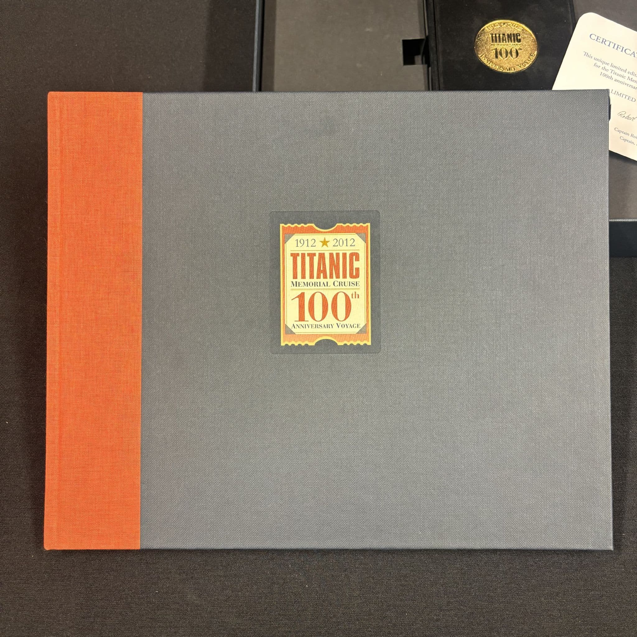 It also contains a book bearing the same centennial label. It is a rare collectible tied to the 100th anniversary voyage.
